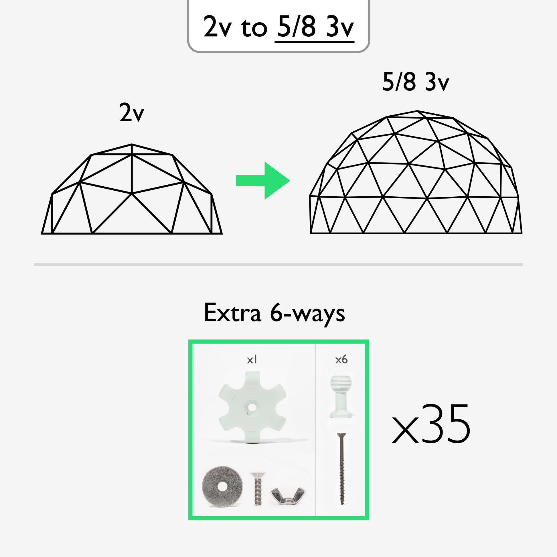 A pack of thirty-five 6-way hubs with associated ball connectors and wood screws and clamping metal work, which will enable you to upgrade your 2v to a 5/8 3v.