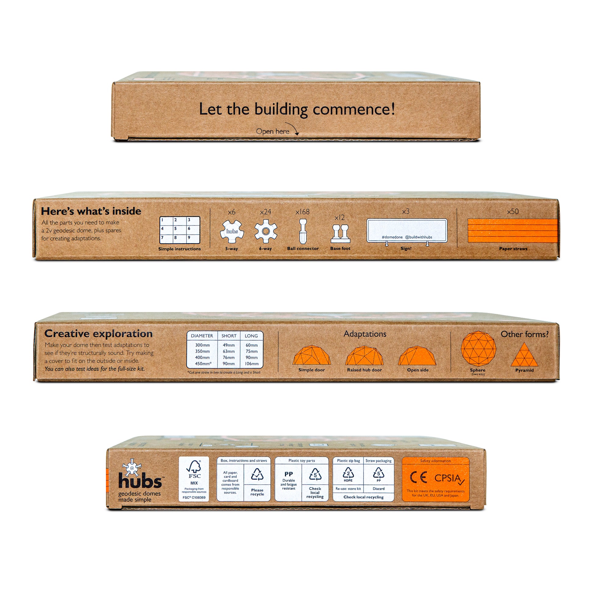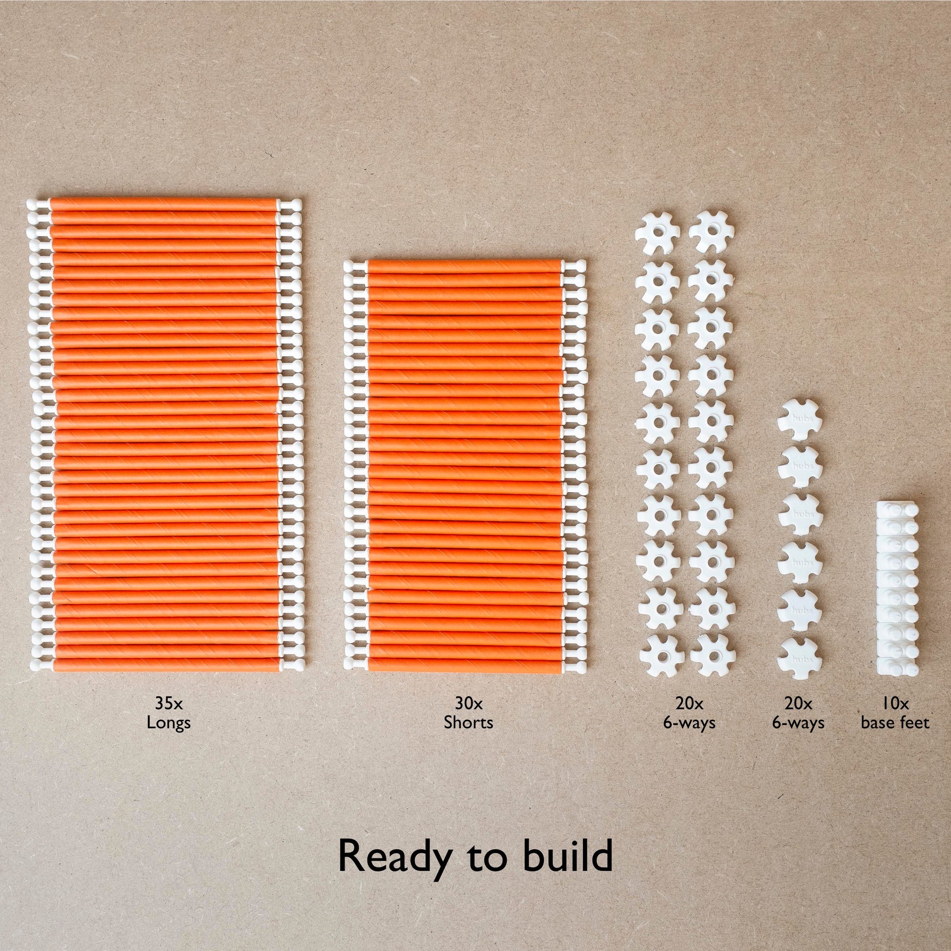 Comes with 50 straws - enough to make a 45cm (18") diameter dome with plenty of extras to experiment with. You also get 4 extra 6-way hubs to help with adaptation ideas.