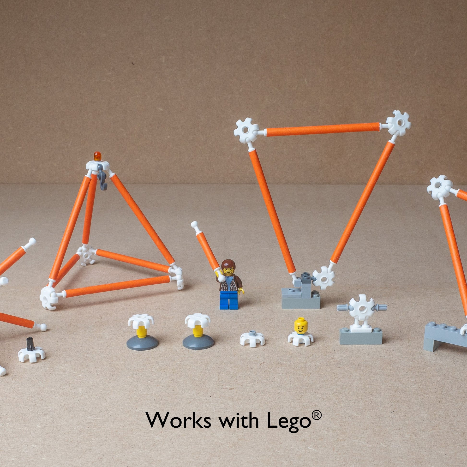 The kit uses easy to cut paper drinking straws as sticks. Great for testing ideas, or just a fun toy for a budding engineer.